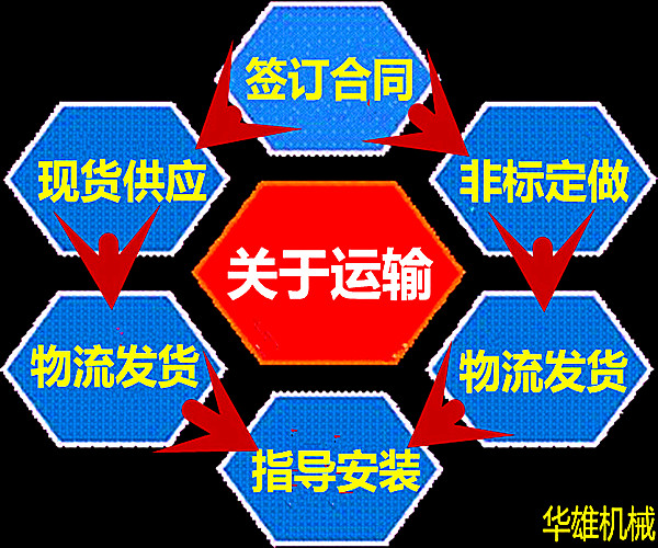 華雄機(jī)械對(duì)于常規(guī)產(chǎn)品現(xiàn)貨供應(yīng),當(dāng)天訂貨,當(dāng)天發(fā)貨,購買便捷。我公司按照合同規(guī)定的時(shí)間、地點(diǎn),把貨物運(yùn)輸?shù)侥康牡?。貨物托運(yùn)后,我公司按照物流變更隨時(shí)通知收貨人。對(duì)于非標(biāo)定制,我公司在預(yù)定工期內(nèi)完工之后及時(shí)通知客戶,如客戶有指定物流或快遞,我們會(huì)按照客戶要求發(fā)貨,如果客戶無特殊制定物流或快遞,我公司默認(rèn)德邦物流發(fā)貨。
